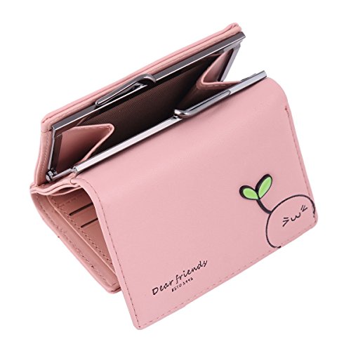 Product Description You are a sweet princess in this dainty coin purse! Made of soft faux leather.This wallet was samll stylish ,you can put it to your handbag ot tote bag.The front is adorned with budding facial expression pattern,with the word"Dear friend".Fastened with snap closure and kiss lock. Inside is 1 main pouchs to hold your cash, coin or keys. 6 card clot for your credit card/bank card.1 ID window/photo window.A coin pouch for coin or small things with kiss lock.Bag measurement approximately:10.5cmx2.5cmx8.3cm(4.13"x0.98"x3.26") 0