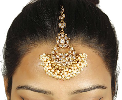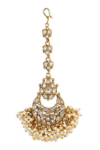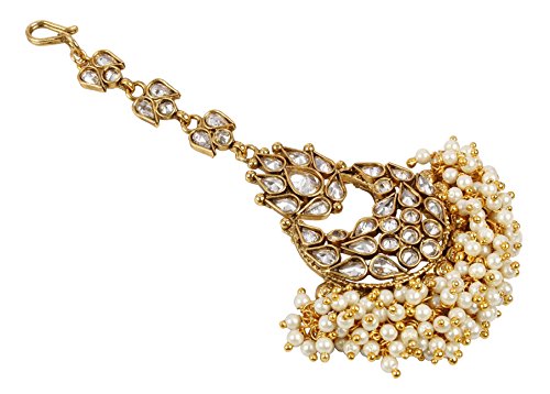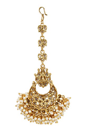 MUCHMORE Authentic Crystal Gold Tone Maang Tikka With Bunch Of Pearls Forehead Traditional Jewelry