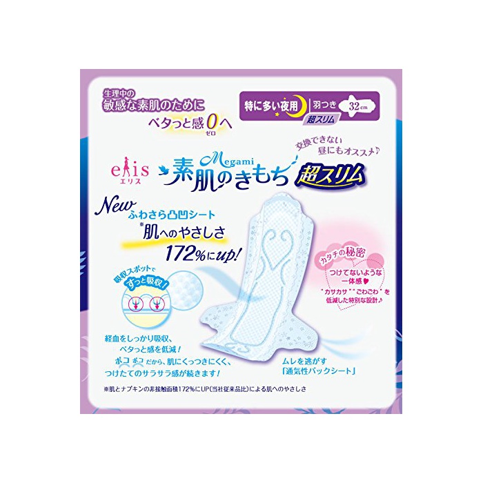 원본상품명: エリス(elis) Megami(メガミ) 素肌のきもち 超スリム (特に多い夜用) 320 羽つき 32cm