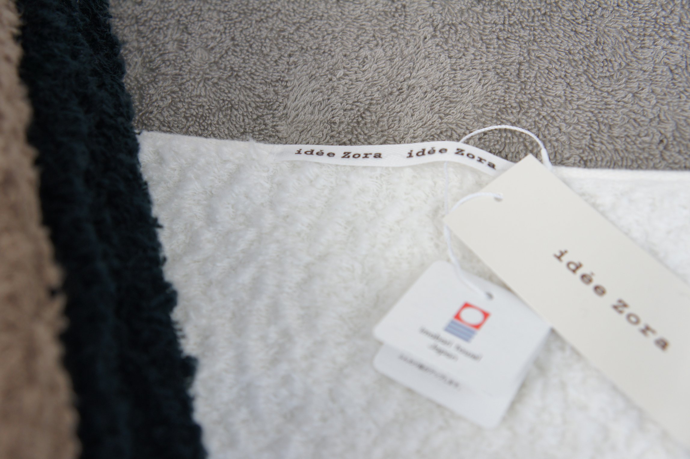 There is about Mimi in the middle of the towel "idee Zora" Logo tape is very convenient because it can hang on hook
