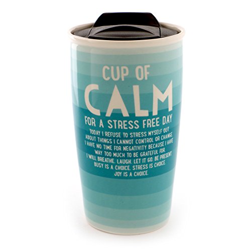 Enesco 6000081 Our Name Is Mud “Calm” Stoneware Travel Coffee Mug Thermos, 14 oz, Aqua