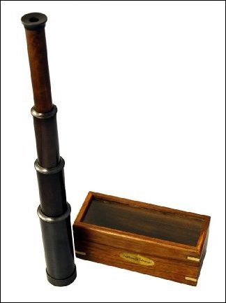 -. Title : 15" Hand Held Antique BLACK Finish Brass Telescope with Wood Box - Nautical Captain