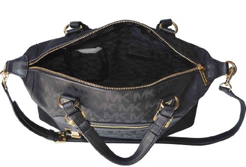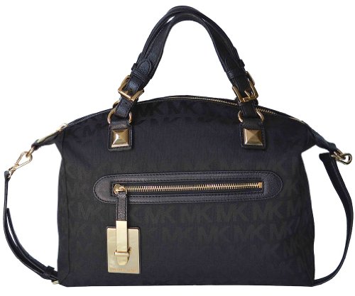 • Authentic Michael Kors Black MK Signature Jacquard with Leather Trim
