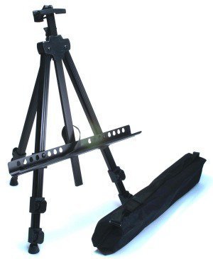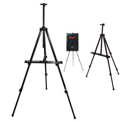 -. Binding : Office Product -. Brand : Display Sign Mart -. Color : Black -. EAN : 0756681543212 -. Feature : Construct by light weigh aluminum alloy. Black / Adjustable height 18"-60", good for floor stand or table top display. / Idea for display, writing board, menu, poster board / Wide Stand for stability. Can hold the frame height up to 33" / Free Carry Case. -. Label : Display Sign Mart -. Manufacturer : Display Sign Mart -. Model : ES-101 Black -. MPN : dss -. PackageQuantity : 1 -. PartNumber : dss -. ProductGroup : Art and Craft Supply -. ProductTypeName : ART_SUPPLIES -. Publisher : Display Sign Mart -. Studio : Display Sign Mart -. Title : Aluminum Easel Lightweight Display Tripod Black Menu Poster Picture Holder Stand or Table Folding Light Weight Easel w/ Free Carry Case -. UPC : 756681543212