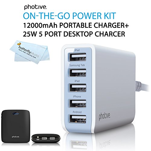 Title : On-The-Go Power Kit For GoPro HERO4 Silver, GoPro HERO4 Black, GoPro HERO Action Camera Includes Photive 12000mAh Dual USB Portable Charger. Hig Capacity Backup Battery Pack Photive 25 Watt 5 Port USB Desktop Rapid Charger. Multiport USB Travel Charger