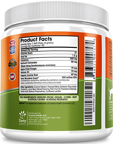 PREBIOTIC & PROBIOTIC COMPLEX - Immune health starts in the stomach, so this formula also features a five-strain Probiotic complex with 250 million CFU of healthy bacteria per chew, and Inulin Prebiotic to help dogs feel their best.