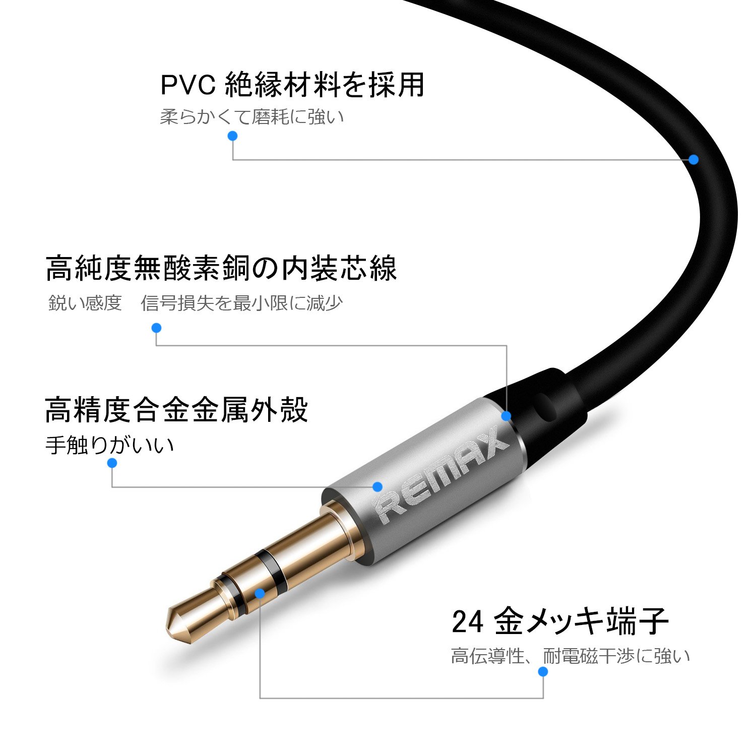 The contact resistance decreases with the 24k gold-plated connector shell, and it has reliability which does not need to worry about rust, signal degradation due to long time use, etc.