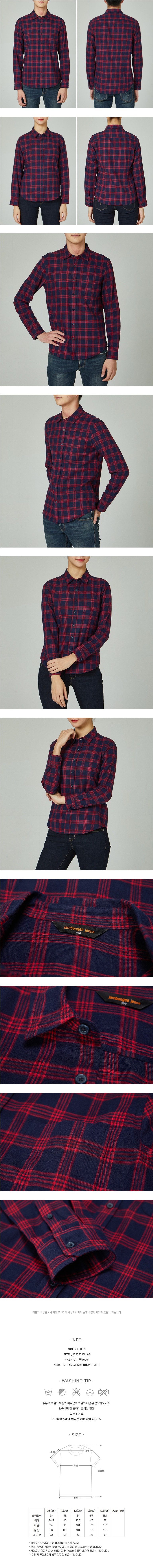 면 플란넬 기모 소재의 유니 체크 셔츠입니다. 레드와 네이비 두 칼라웨이의 체크 패턴이며, 캐쥬얼하게 연출하기 용이합니다.