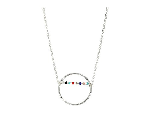-. Title : Dogeared Smooth Open Circle with Multi-Color Seed Bead Bar Necklace Sterling Chain Necklace, 16"+ 2" Extender