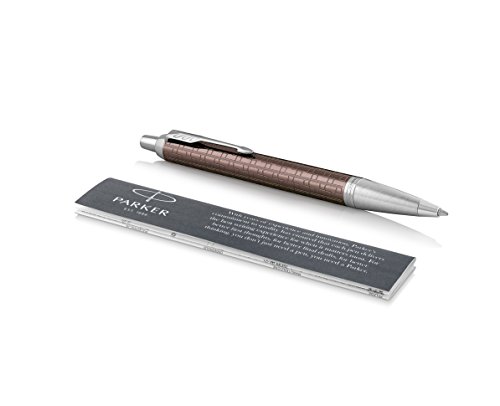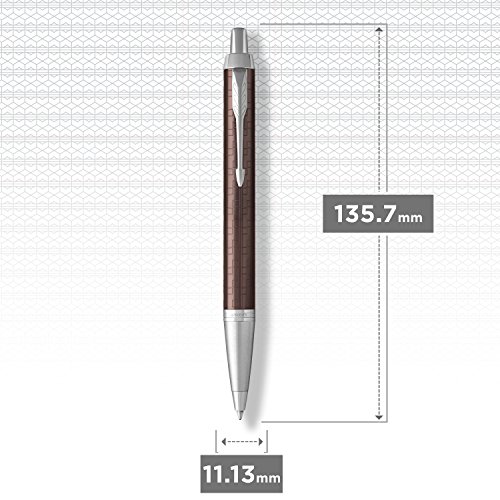 Studio : Newell Rubbermaid Office Publisher : Newell Rubbermaid Office Binding : Office Product Product Description At once smart, polished and professional, the PARKER IM Ballpoint Pen is an ideal partner with unlimited potential. The sleek tapered shape pairs seamlessly with innovative designs to make a striking statement. Crafted with a brown aluminum body etched in a pattern that's both modern and timeless and accented in striking chrome trim, this PARKER pen makes a memorable gift. Retracting with a satisfying click, the ballpoint tip and Quinkflow ink ensure an exceptionally smooth and reliable writing experience. Every detail is refined to deliver a writing experience that is at once dependable and faithful to over 125 years of PARKER brand heritage. 0