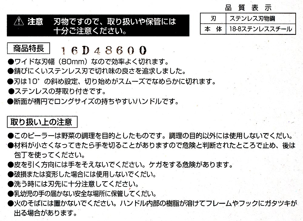 Entirely wide-size peeler!