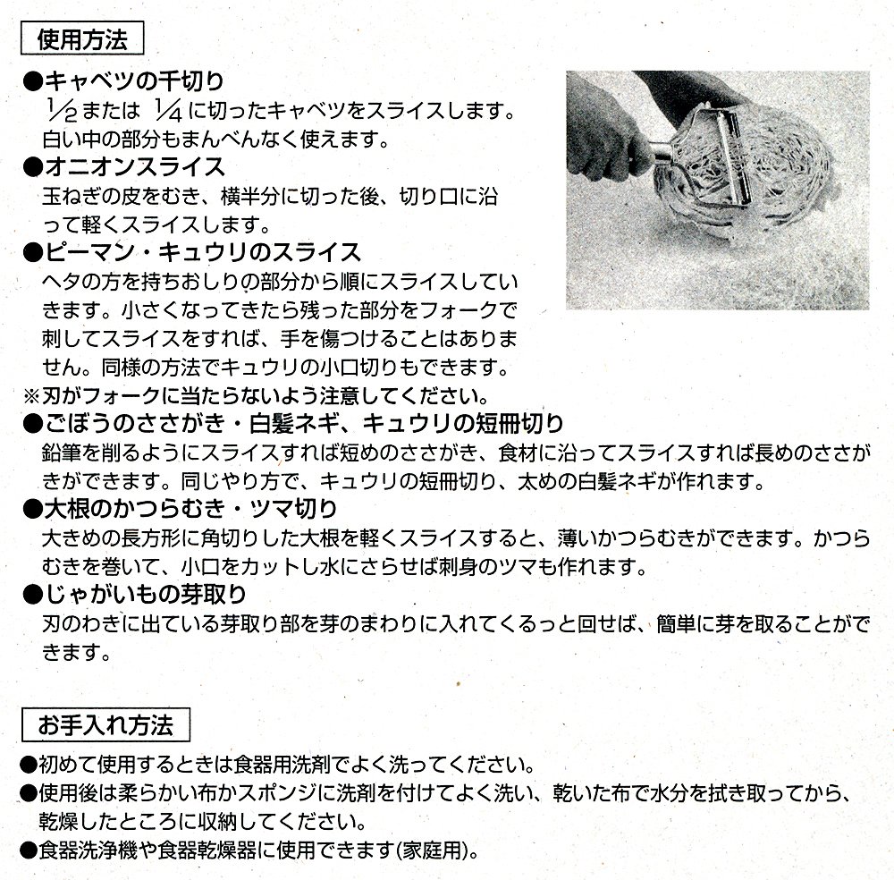 It can be cut efficiently with a wide blade width (80 mm) such as cabbage shredded slice, onion slice, burdock scribbling etc!