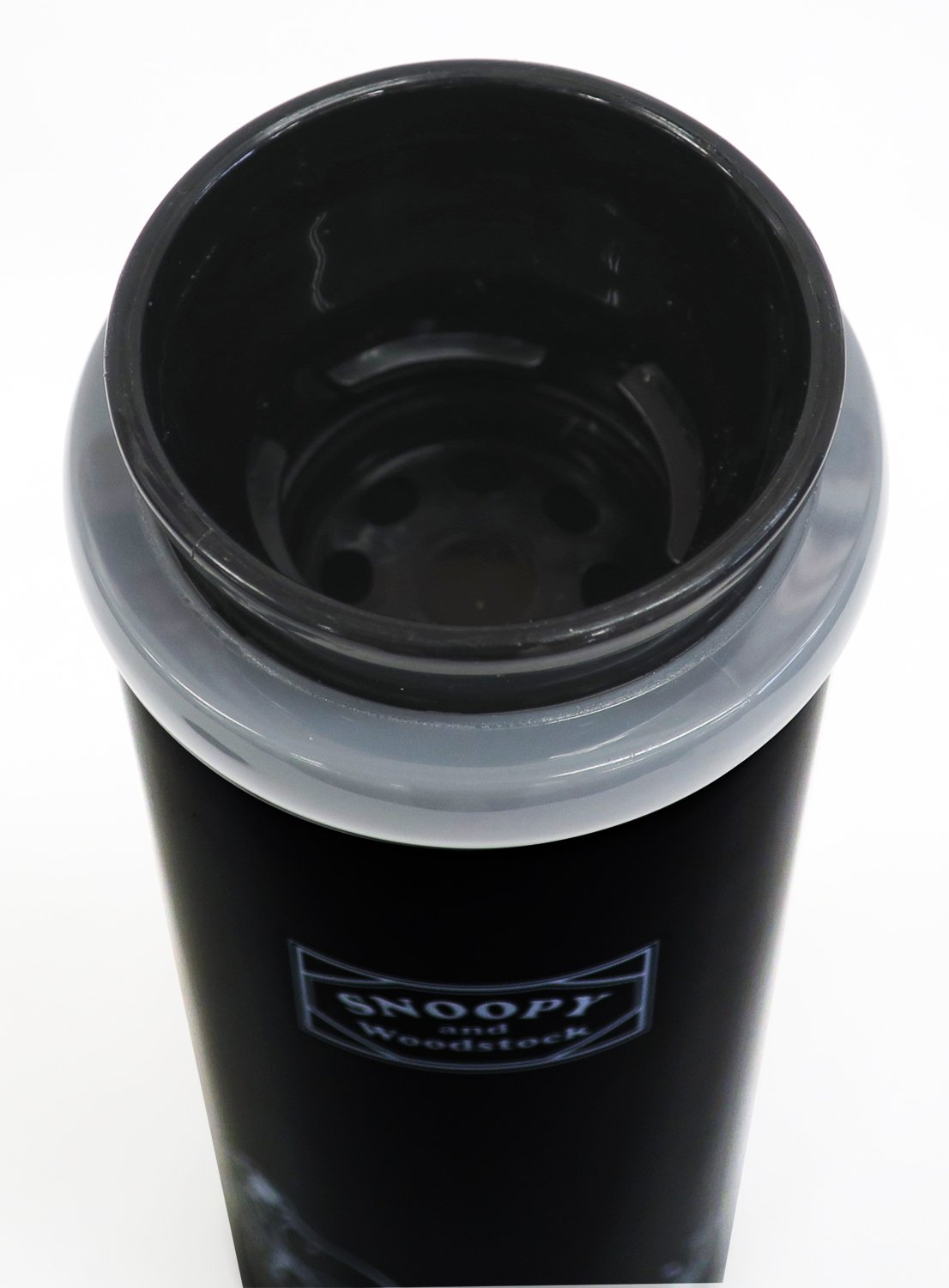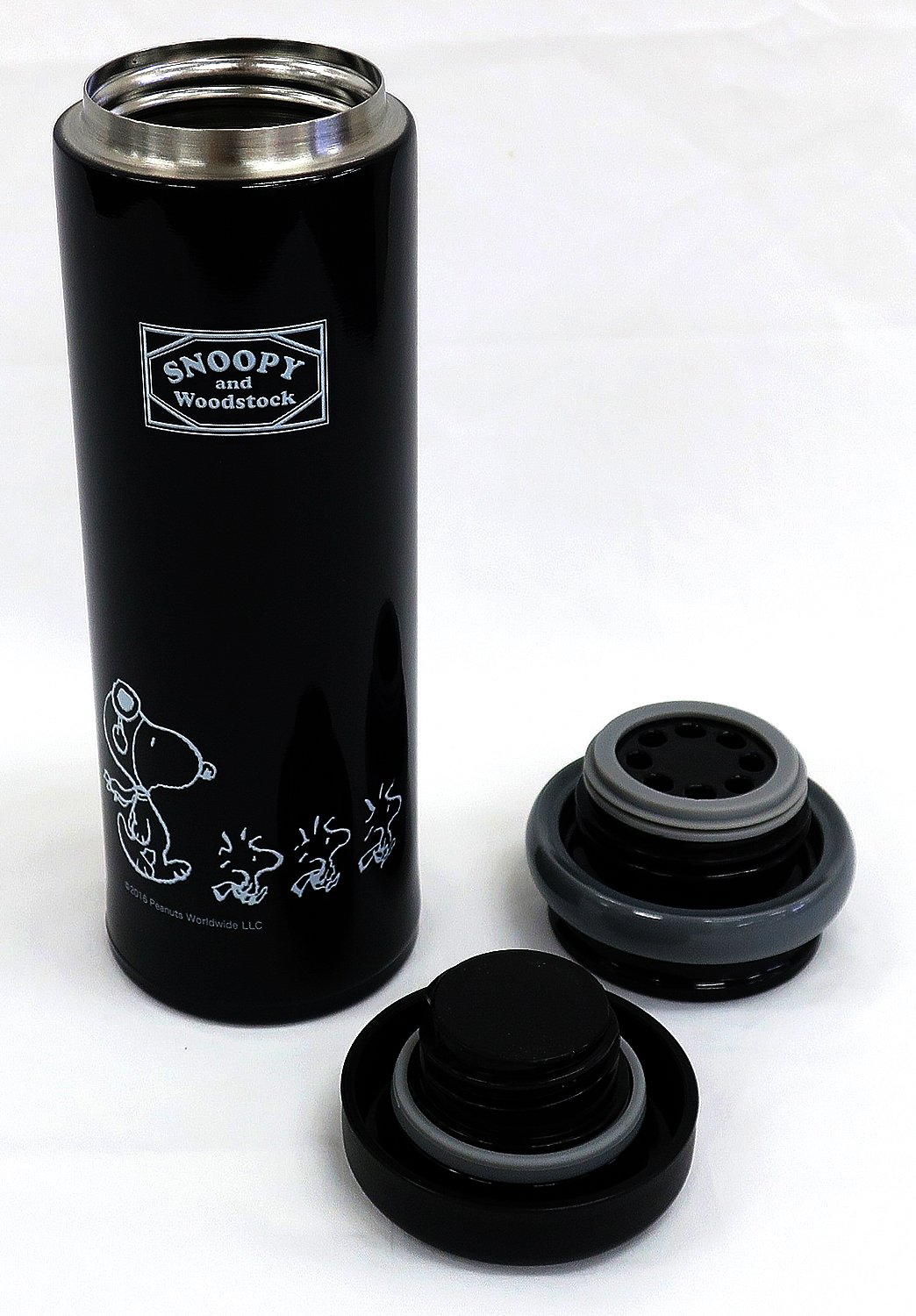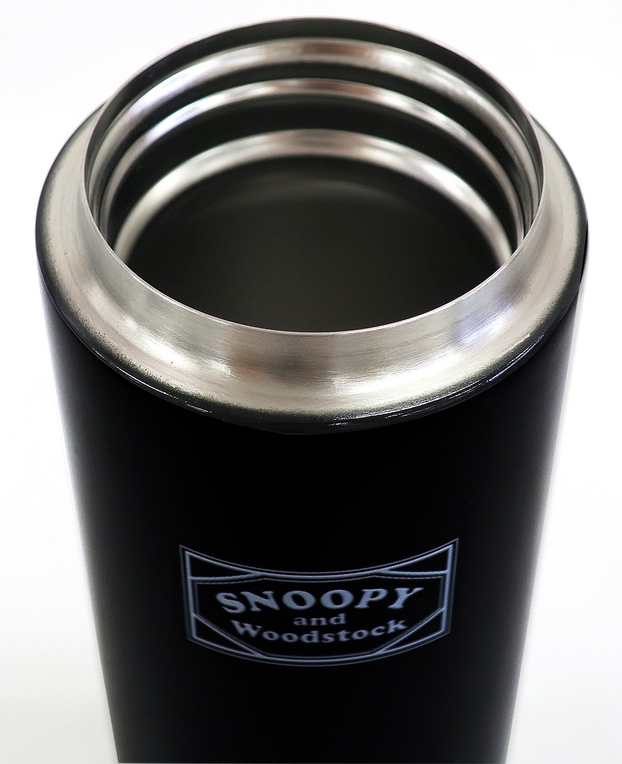 Simple stainless steel bottle with Snoopy and its best friend Woodstock drawn.
