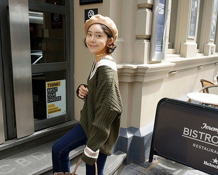 Vネックのラインデザインでカジュアルさと女性らしさを♪