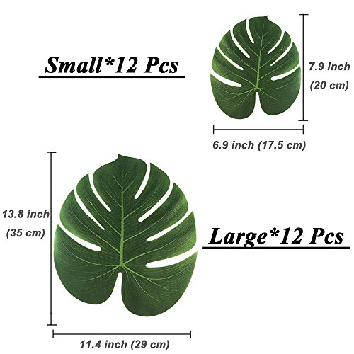 - Palm leaves decor come with 2 sizes, meet different decorating needs, Large: 13.8''x11. 4''(12pcs); Small: 8''x6. 7''(12pcs)