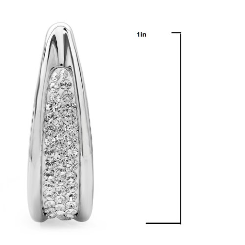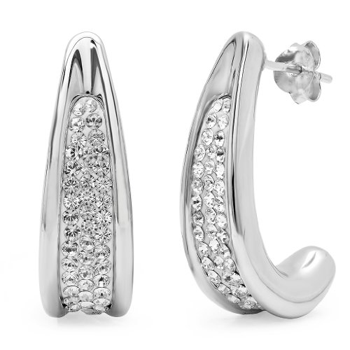 Fashioned in sleek sterling silver, these J-hoop earrings feature a fabulous array of shimmering Swarovski crystals adorning the front. Buffed to a brilliant shine, these post earrings secure comfortably with friction backsFeature