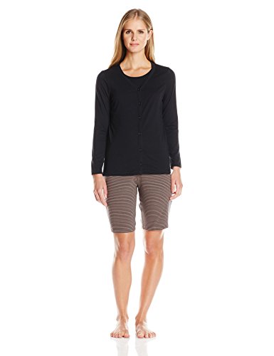 Jockey Women's 3 Piece Cotton Printed Bermuda Pj Set, Black Stripe Short, Small