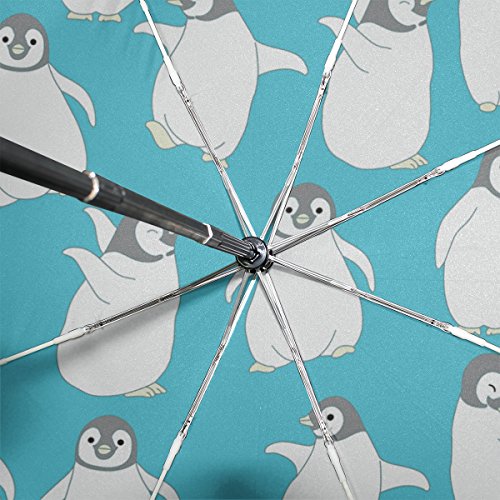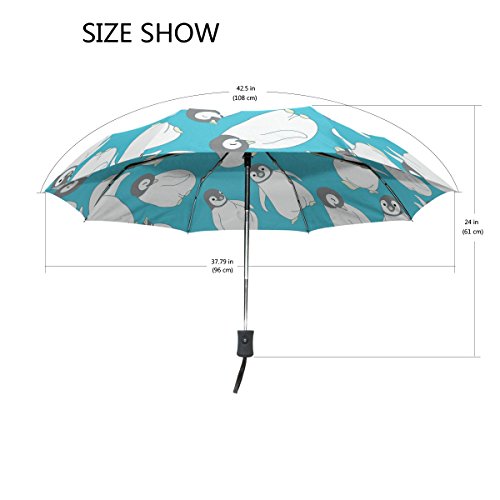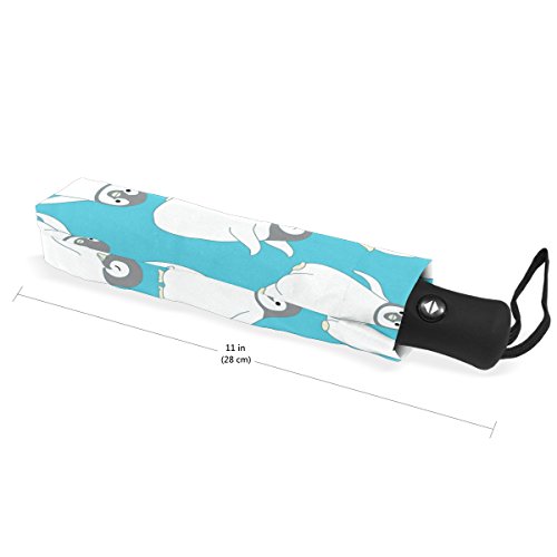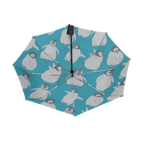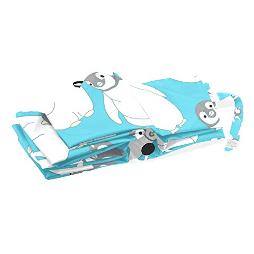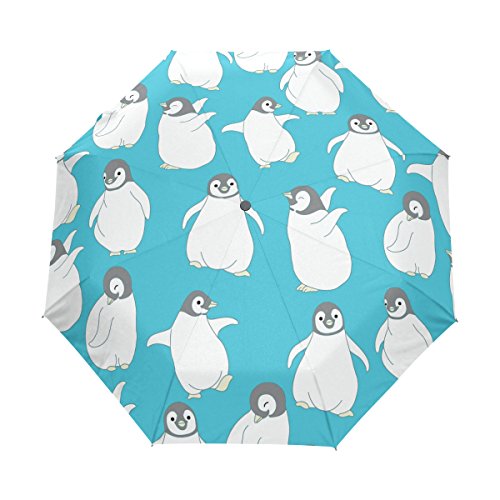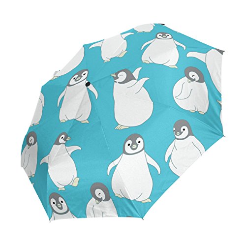 materials: made of 100% polyester pongee waterproof fabric. Weight: it is lightweight, 393g. Single-sided printing. Style: automatic open and close umbrella; foldable mini travel umbrella. Can be used on rainy and snowy day. Suitable for boys, girls, women and man. Feature: Light weight, small, portable. This Cute Penguin Pattern Blue Background folding umbrella is also a perfect Christmas gift, new year gift, and back to school gift. 0
