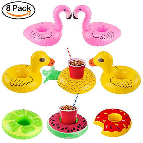 SHARE MORE COOL AND FUN WITH YOUR FAMILY AND FRIENDS! ? CREATE A FUN ENVIRONMENT Our wide selection of pool inflatables are designed for you to have fun in the sun! ? INFLATABLES ☞ PERFECT GIFT FOR BOTH KIDS AND ADULTS Our fun floats are the essential outdoor toy, as they keep kids entertained for hours and adults will have fun watching! Floats are great for summer fun, and nice to have when you just want to relax and lounge around. Color: As picture shown Material: PVC plastic Inflatable Size: 18cm/7inch (W) ? PACKAGE INCLUDED: 2 x Duck coaster 2 x Flamingo coaster 2 x Lemon coaster 1 x Pineapple coaster 1 x Donut coaster 1 x Florescent wristband ? WARNING TIPS: ☞☞☞ Please refer to the measurement. Tiny measuring error is allowable in normal range. 0