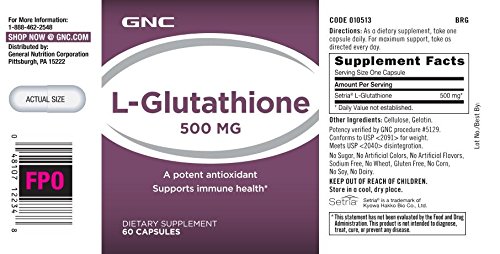 GNC L-Glutathione Supplement, A Potent Antioxidant That Supports Immune Health, 500mg - 60 Capsules