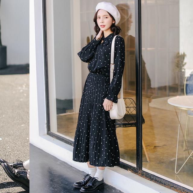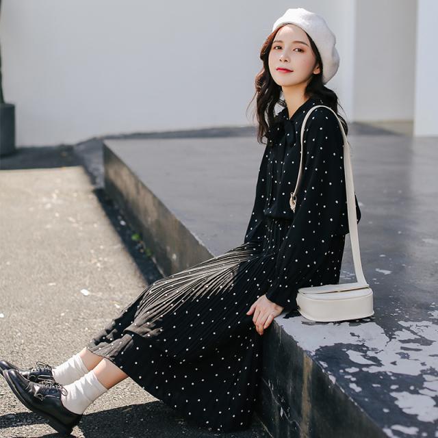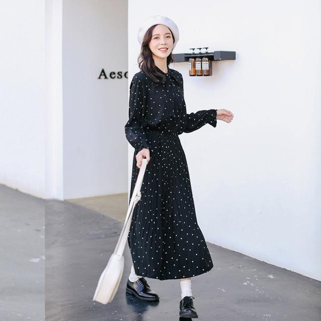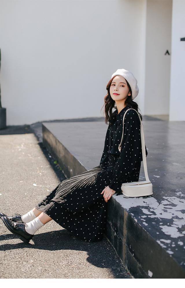 フェミニンな小さなドットをシアーなシフォンにプリントしたロングワンピースです☆