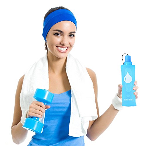 RUNACC Collapsible Water Bottle Soft Water Bottle Foldable Water Bottle with Leakproof Twist Cap, Blue, 250ml