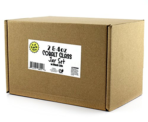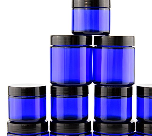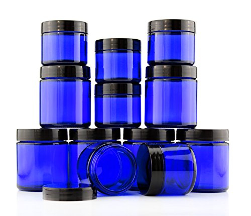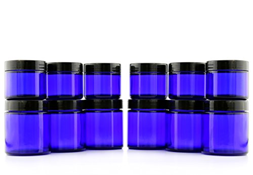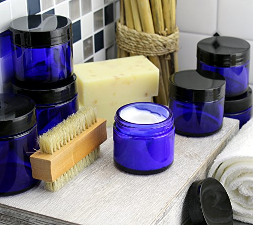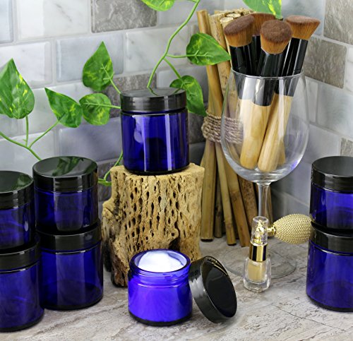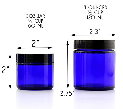 2-Ounce & 4-Ounce Cobalt Blue Glass Cosmetic Jars (Six 2oz / Six 4oz); 60ml / 120ml Capacity, BPA-Free Lids
