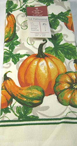 La Patisserie Plush Kitchen Towels 2 Pk Pumpkins & Squash 18" x 28" 100% Cotton