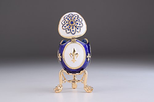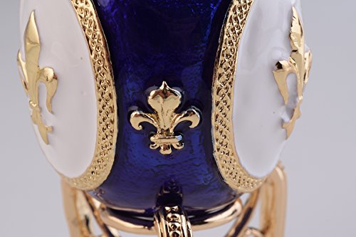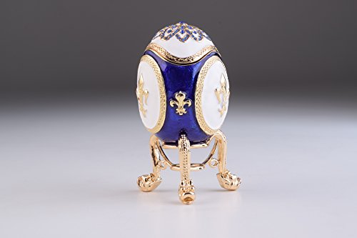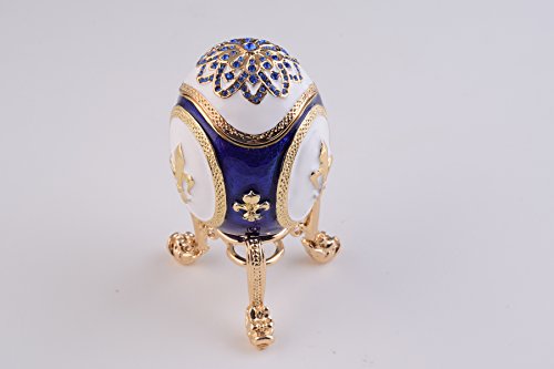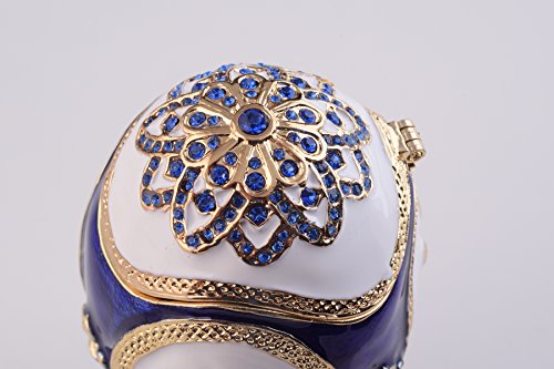 Blue and White Faberge Egg Trinket Box Decorated with Swarovski Crystals