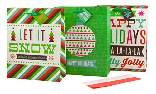 Studio : Madison Paper Publisher : Madison Paper Binding : Health and Beauty Product Description This large Christmas gift bag assortment is perfect to use for special events and corporate promotions. And at these bulk wholesale prices, you can still afford to deck the halls. Festive, fun and at a price that can't be beat these bags are great. Nine gift bags per package with 9 Sheets of tissue, Nine assorted Christmas designs. For instant holiday cheer, fill these Christmas bags with unique and awesome gifts. Bag Dimension: Large Bag 10.25 x 12.75 x 4.5 Tissue Dimension: 20" X 20 0
