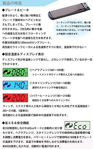 사용하기 쉬움 을(를) 고집한고데기 발미끄러짐이 잘 상처로 강한 특수 가공 플레이트 채용.헤어 핀을 사이에 둬 버려도 플레이트에 상처가 포함되지 않습니다.3차원 적으로 움직임 모발에의 과도한 압력을 막는 플로팅 플레이트도 특징입니다.고성능 세라믹 히터에 의한 급속 가열에 설정 온도로 도달하는 것도 이르고, 온도의 강하가 적다.또한 가발 등의 인공모부터 완고 없애어라 털로도 대응 할 수 있는 온도 설정도 매력 디스플레이색이 각 온도 레인지에 변화하고, 어느 레인지로 사용 하고 있는지를 한 눈에 안다. fk094igrjs