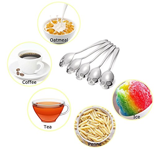 - PERFECT DESIGN: The skull shape makes the spoon look cool and stylish. It is a fun and decorative accessory for your daily life. The funny spoon can also encourage your kids to eat more, and stir kinds of drinks & food. The opening eyes and nose make it easy to shake off excess sugar to curb your sugar consumption.