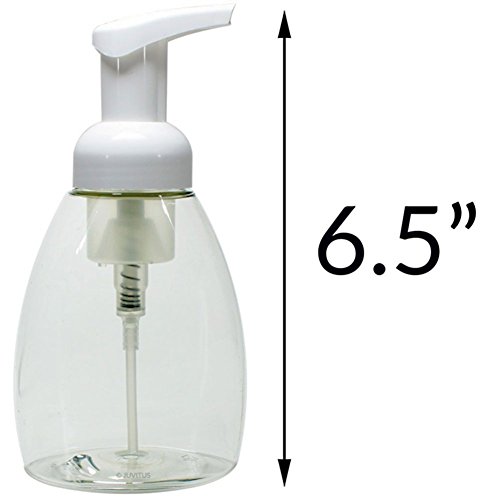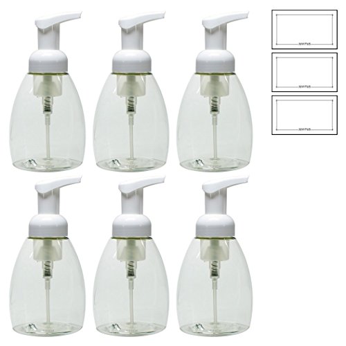 Clear PET BPA Free Plastic Refillable Travel Foamer Pump Bottle - 250 ml / 8.3 oz (6 Pack) + 3 bottle labels