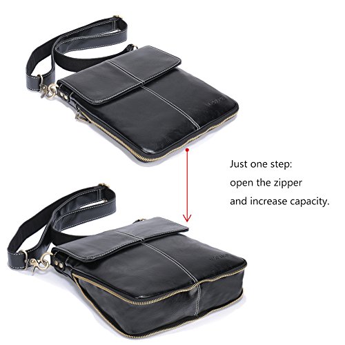 -. Feature : Product Dimensions, length 9 inches, width (0.4-2.4) inches, height 9.8 inches. Open the outside zipper, bag will be suitable for iPad 4 / Organic synthetic materials added to increase bag flexibility and abrasion resistance. Performance comparable with genuine leather. / Capacity can be adjusted. Open the external zipper. The capacity of the bag becomes larger. Close the external zipper, it will be easier to carry. / Plating hardware. Nice and generous. Prevent oxidation, prolong service life. / Obviously. The suture design is clearly visible, which can increase the sense of fashion.