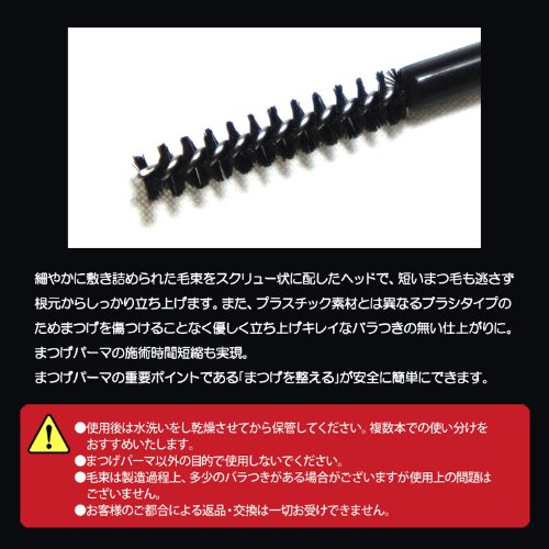 The hair bundle which is finely spread at the time of eyelash perm treatment in the head was placed in a screw-like short eyelashes firmly launch from the base without missing "Kururin bar". Also to not finish a gentle start-up beautiful rose with without damaging the eyelashes for a different brush type than the plastic material. Also it is realized treatment time shortening of eyelash perm. Eyelashes is an important point of perm "prepare the eyelashes" can be safely easily.