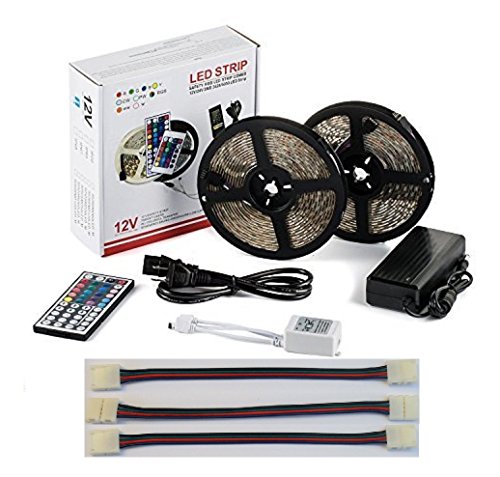 LED Strip Lights Kit 32.8 FT 10M RGB 5050 IP65 Waterproof 6A IR Controller 5A Power Supply 44 Key Color Changing Remote Control Stage Lighting Dimmable Accent Lights Home & Outdoor Lighting