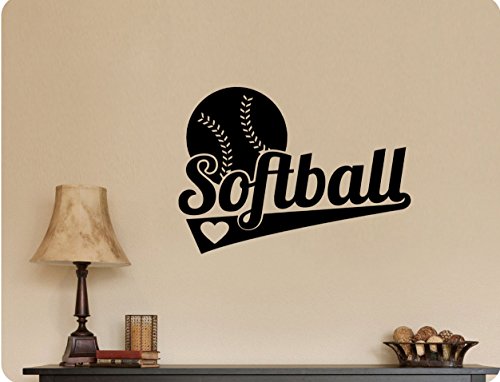 -. Title : 24"x32" Softball with Heart Fun Baseball Bat Ball Wall Decal Sticker Art Mural Home DŽcor Quote