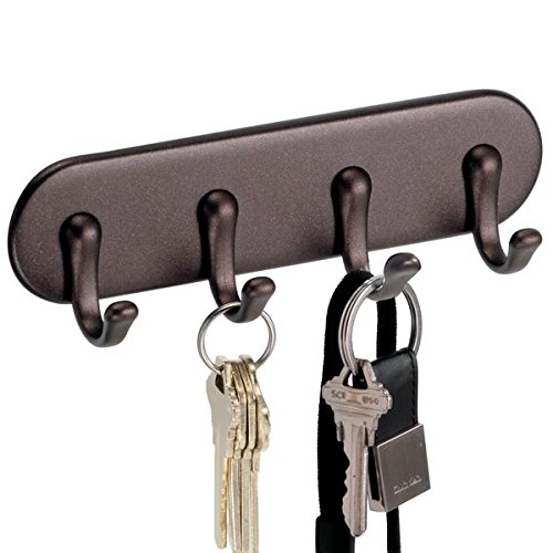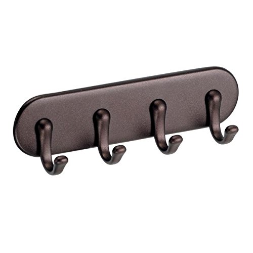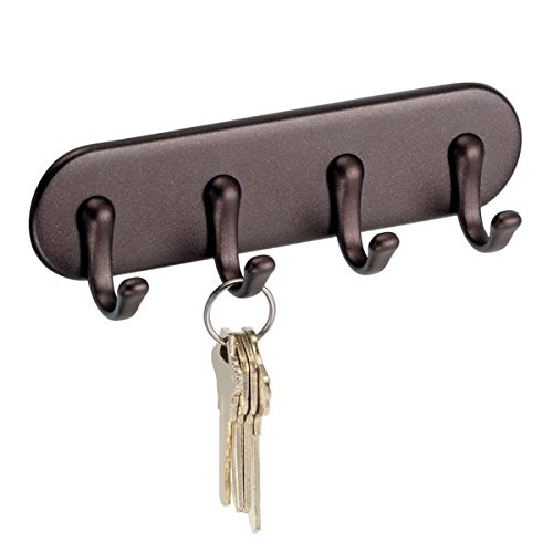 mDesign Self-Adhesive Key Rack Organizer for Entryway, Kitchen - 4 Hooks, Bronze