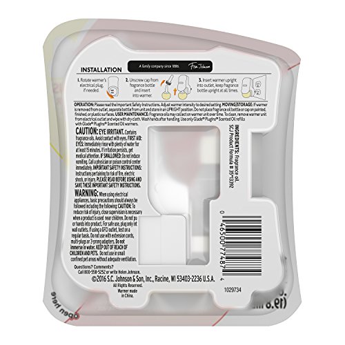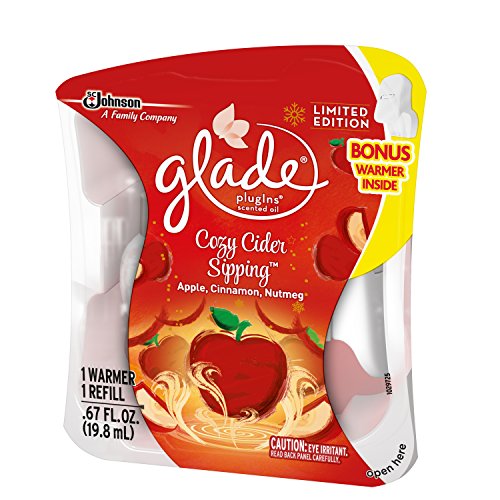 ReleaseDate : 2017-10-02 Studio : SC JOHNSON Publisher : SC JOHNSON Binding : Health and Beauty Product Description Continuous fragrance for any size room is just an outlet away with Glade PlugIns Scented Oils. With each fragrance refill lasting up to 30 days, on low setting, simply plug in the warmer for long-lasting fragrance that's adjustable to fill any room in your home with your favorite Glade fragrances. Rosy Cheeks. Warmth. Delightful apple notes with comforting spices of nutmeg and cinnamon. A touch of berries notes, balanced with creamy musk. Come inside; feels like cozy. 0