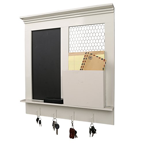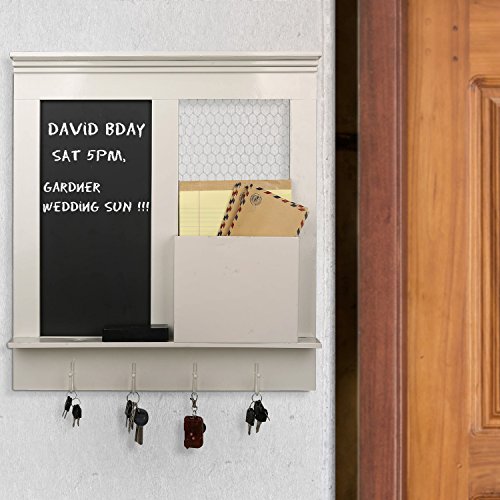 Wall Mounted Country Rustic Erasable Chalkboard Sign / Memo Board w/ Mail Holder & Hanging Hooks