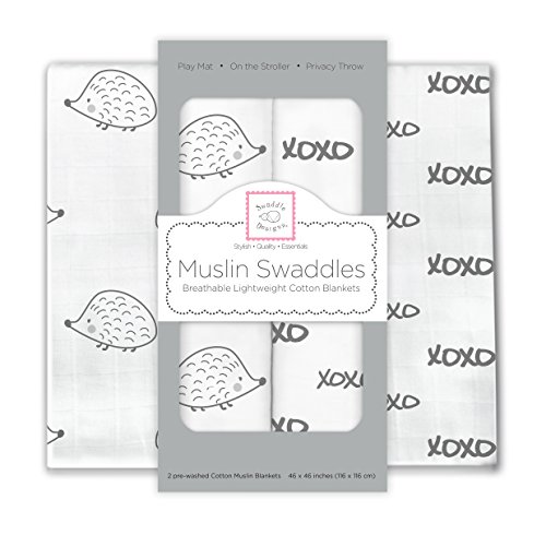 SwaddleDesigns Cotton Muslin Swaddle Blankets, Set of 2, Hogs and Kisses!