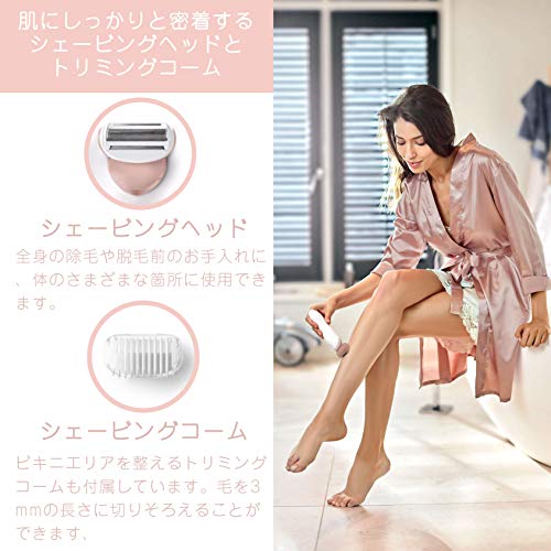 - 肌にしっかりと密着するレディースシェーバーヘッドとトリミングコーム