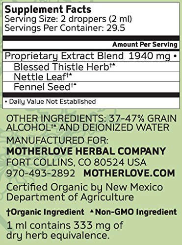 -. Title : Motherlove More Milk Organic Herbal Breastfeeding Supplement for Lactation Support, 2 oz Liquid Tincture