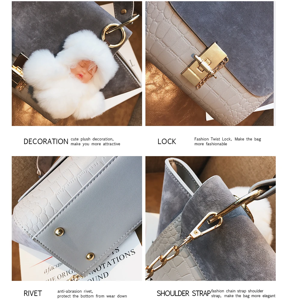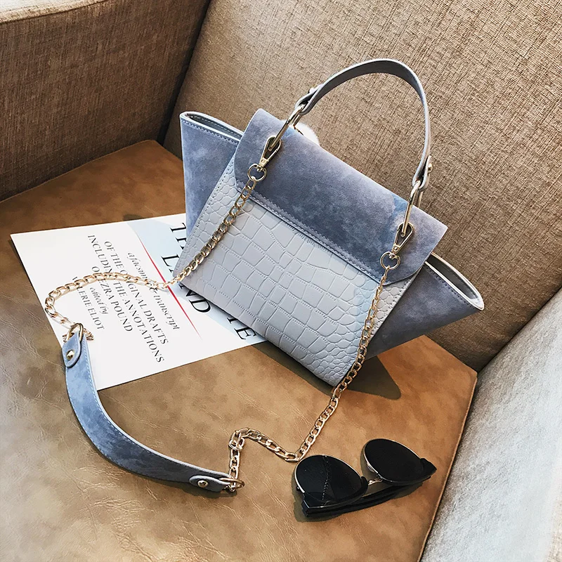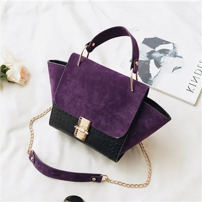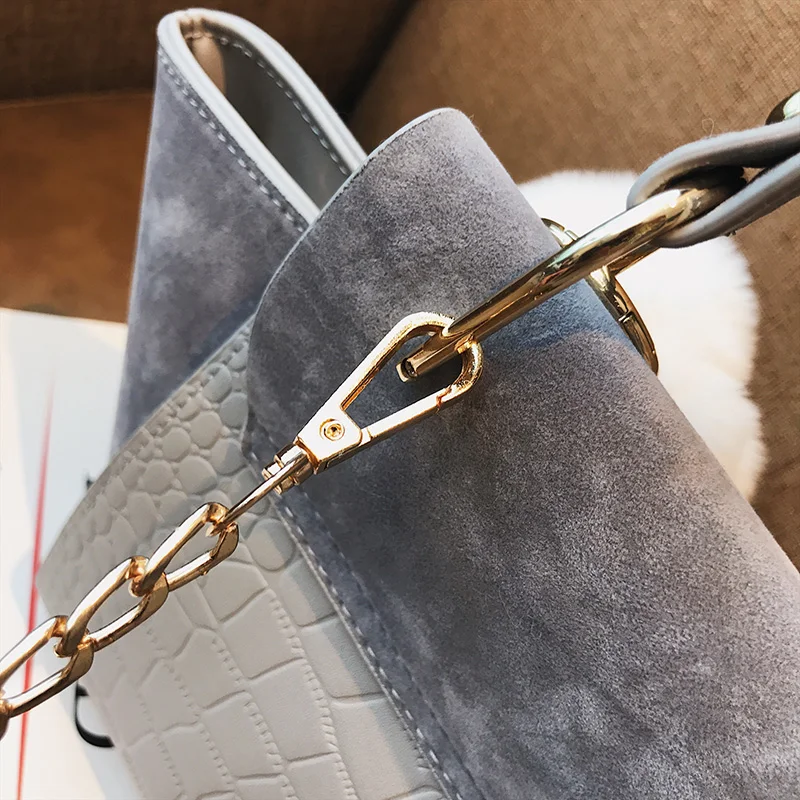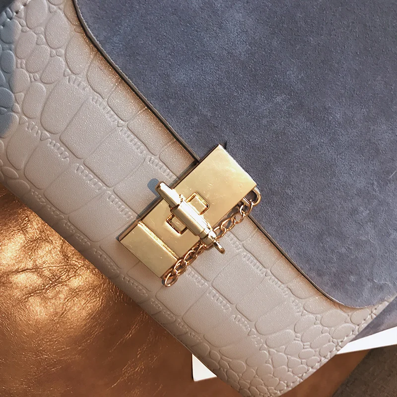 chain lock trapeze women bag:crocodile+Nubuck Leather patchwork trapeze women bag
