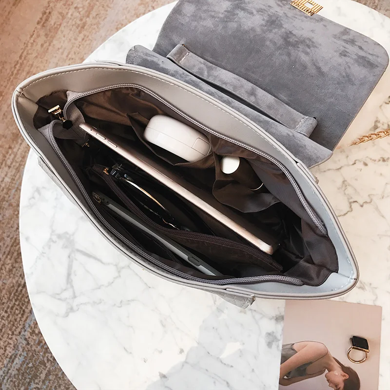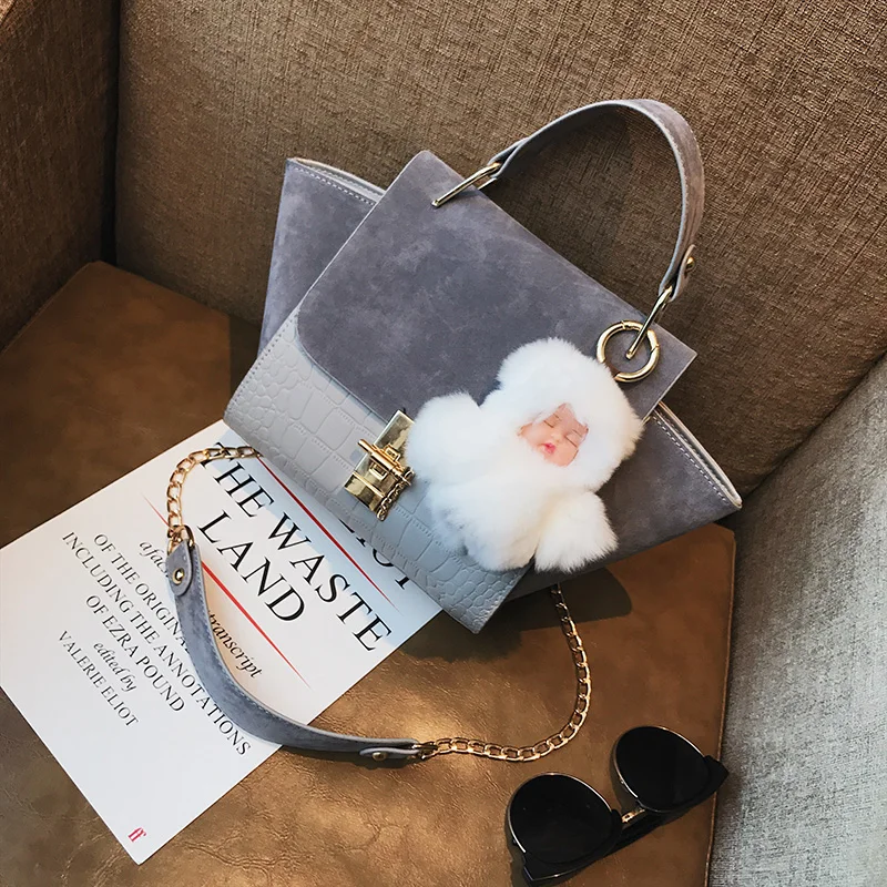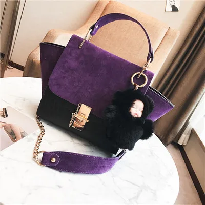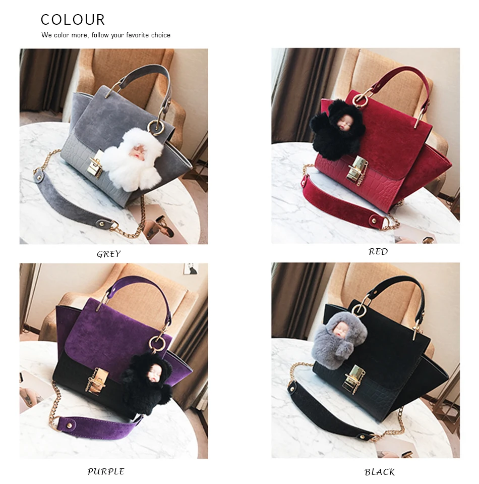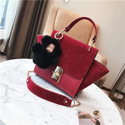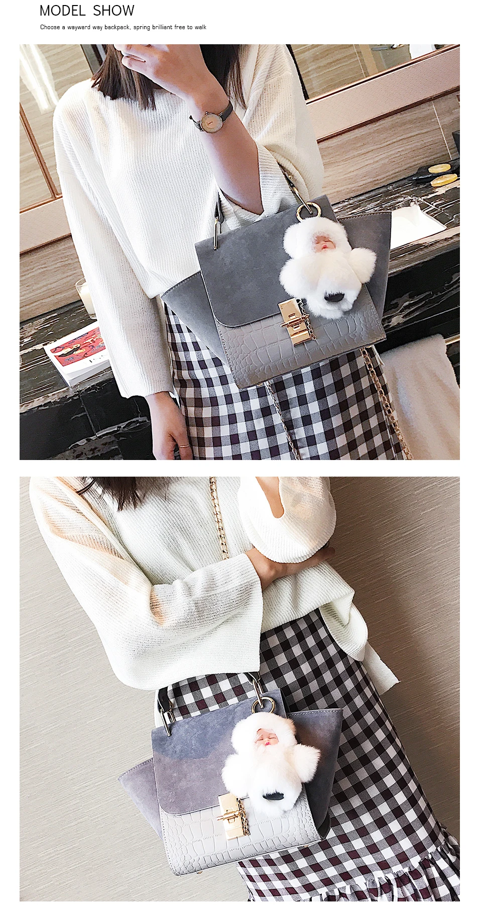 chain lock trapeze women bag:crocodile+Nubuck Leather patchwork trapeze women bag