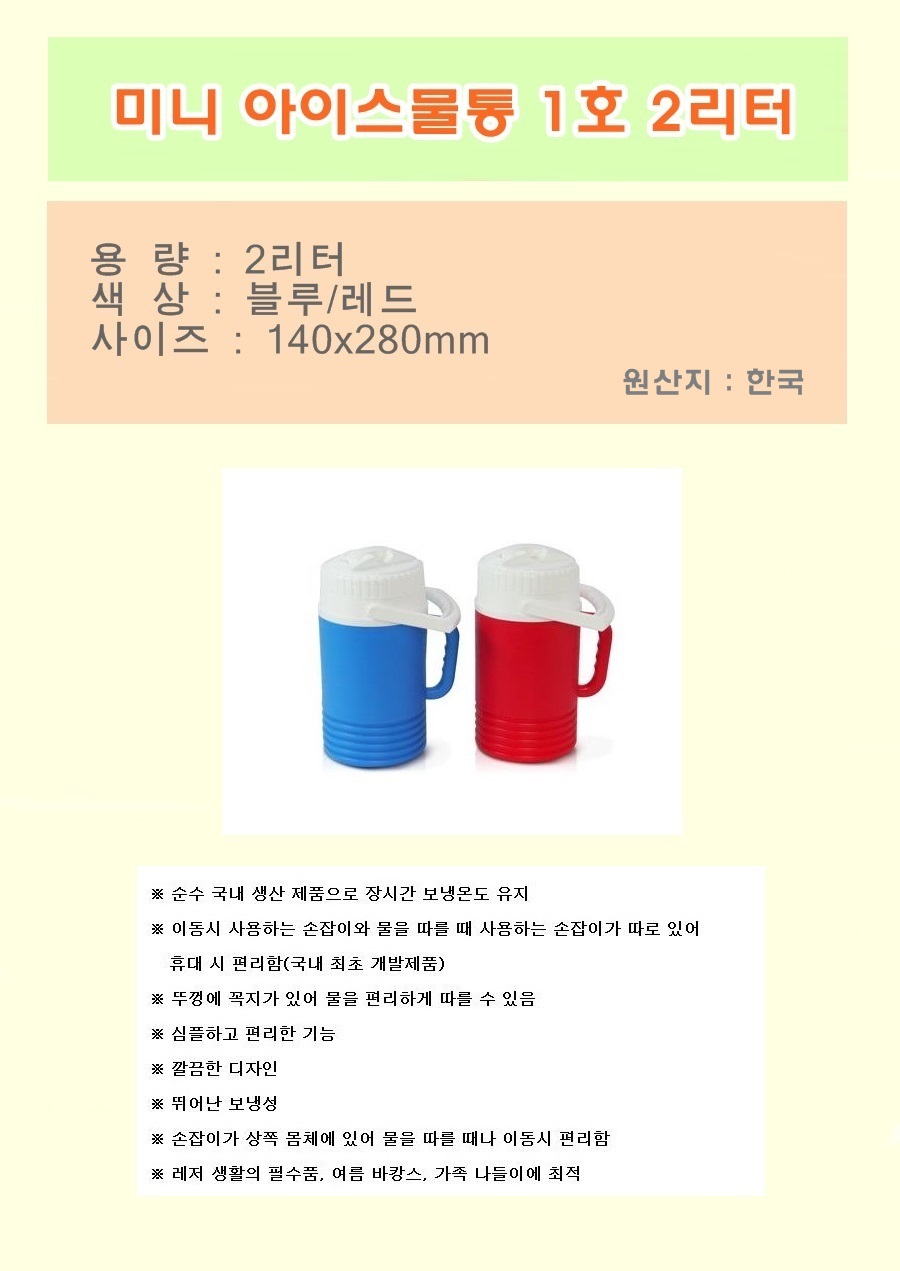 - 품명 및 모델명미니아이스물통1호 2리터