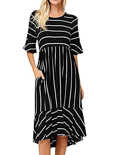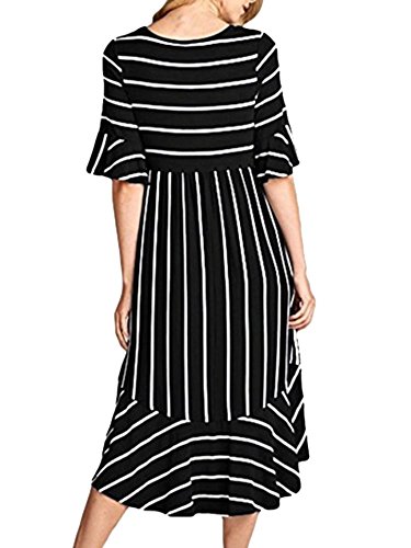 Feature: Round Neck, half Sleeve With Ruffle Details, High Low Irregular Hem,Elastic High Waist Knee Length Midi Dress