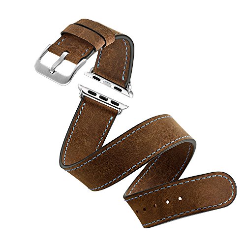 Elobeth for Apple Watch Band, iWatch Crazy Hores Band Leather Watch Strap Wrist Band Replacement Clasp for Apple Watch Series 2 Series 1 Brown 38mm