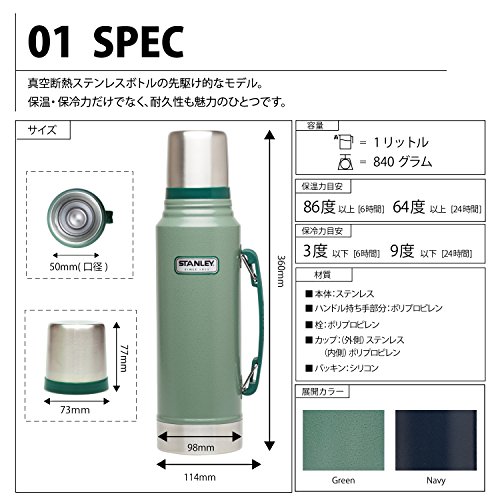 원본상품명: STANLEY(スタンレ?) クラシック?空ボトル 1L グリ?ン 水筒 01254-046 (日本正規品)