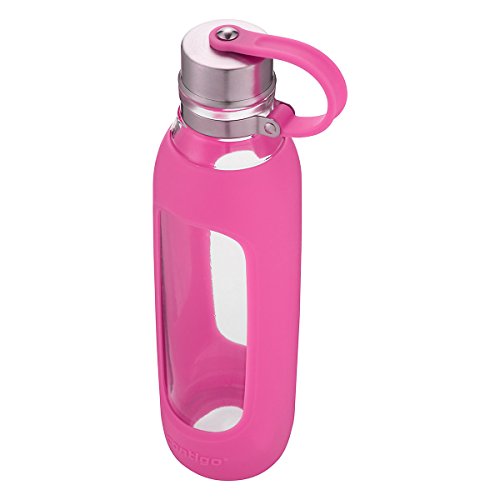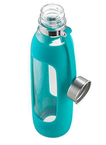 Studio : Contigo Publisher : Contigo Binding : Kitchen Product Description This glass water bottle is engineered for those looking for a completely plastic-free container. Contigo has added a stylish silicone sleeve to help protect the bottle while still letting you take a good look at it.Made completely of glass and food-grade siliconeThe tethered lid makes a convenient carry loop for easy portability when the lid is closedWide mouth top is ideal for chugging or adding iceWhen closed the lid is leak-proof for on-the-go activitiesTop rack dishwasher safe lid and bodyBPA free 0